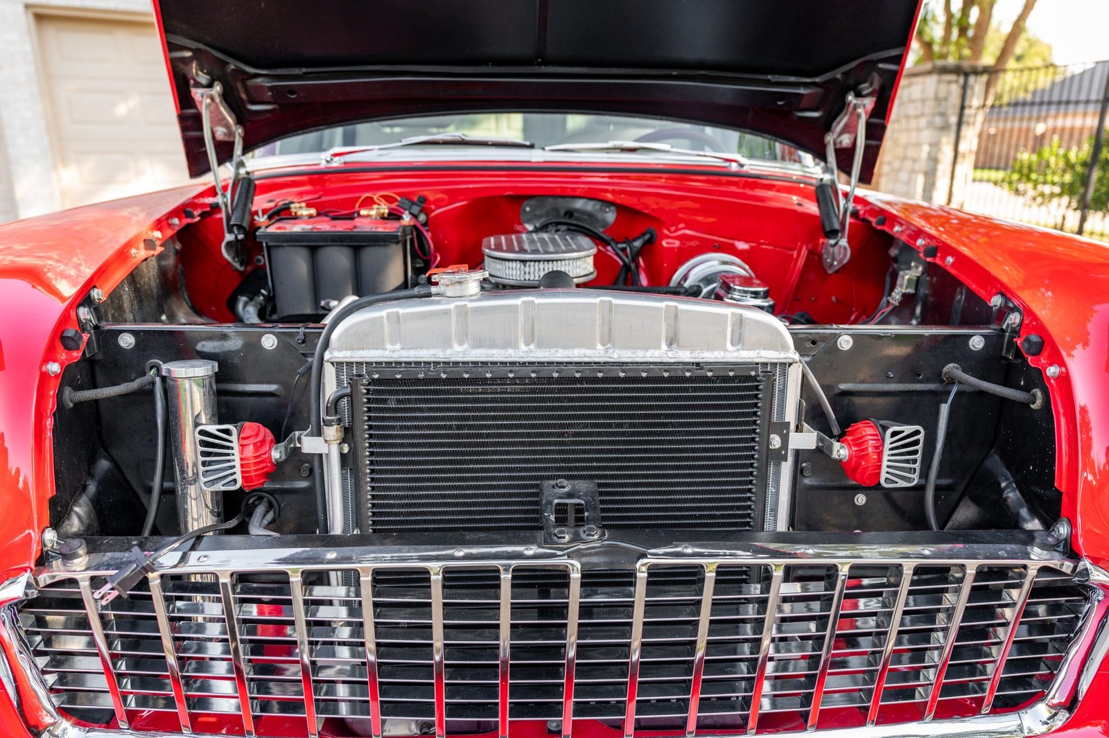 Red finish · Chrome bumpers & side trim · Tinted glass · 15″ American Racing wheels · BFGoodrich Radial T/A tires