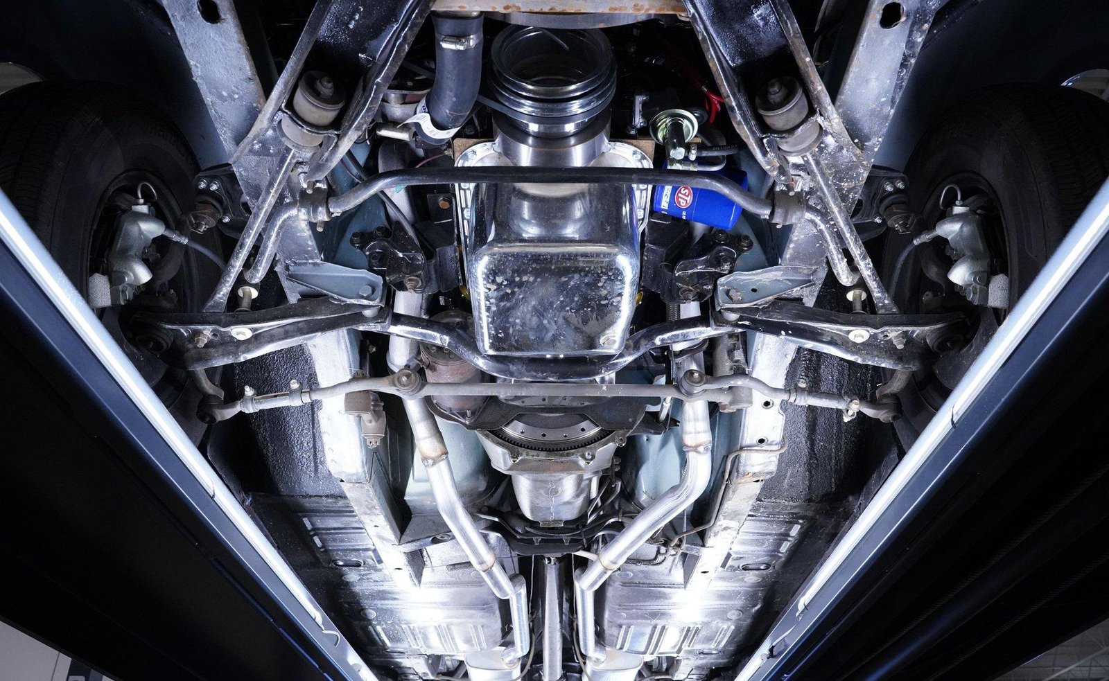 Mechanical: Power front disc brakes, aluminum radiator, coil spring and sway bar front suspension, rear leaf springs with shocks, and aftermarket mufflers providing a deep, classic tone.