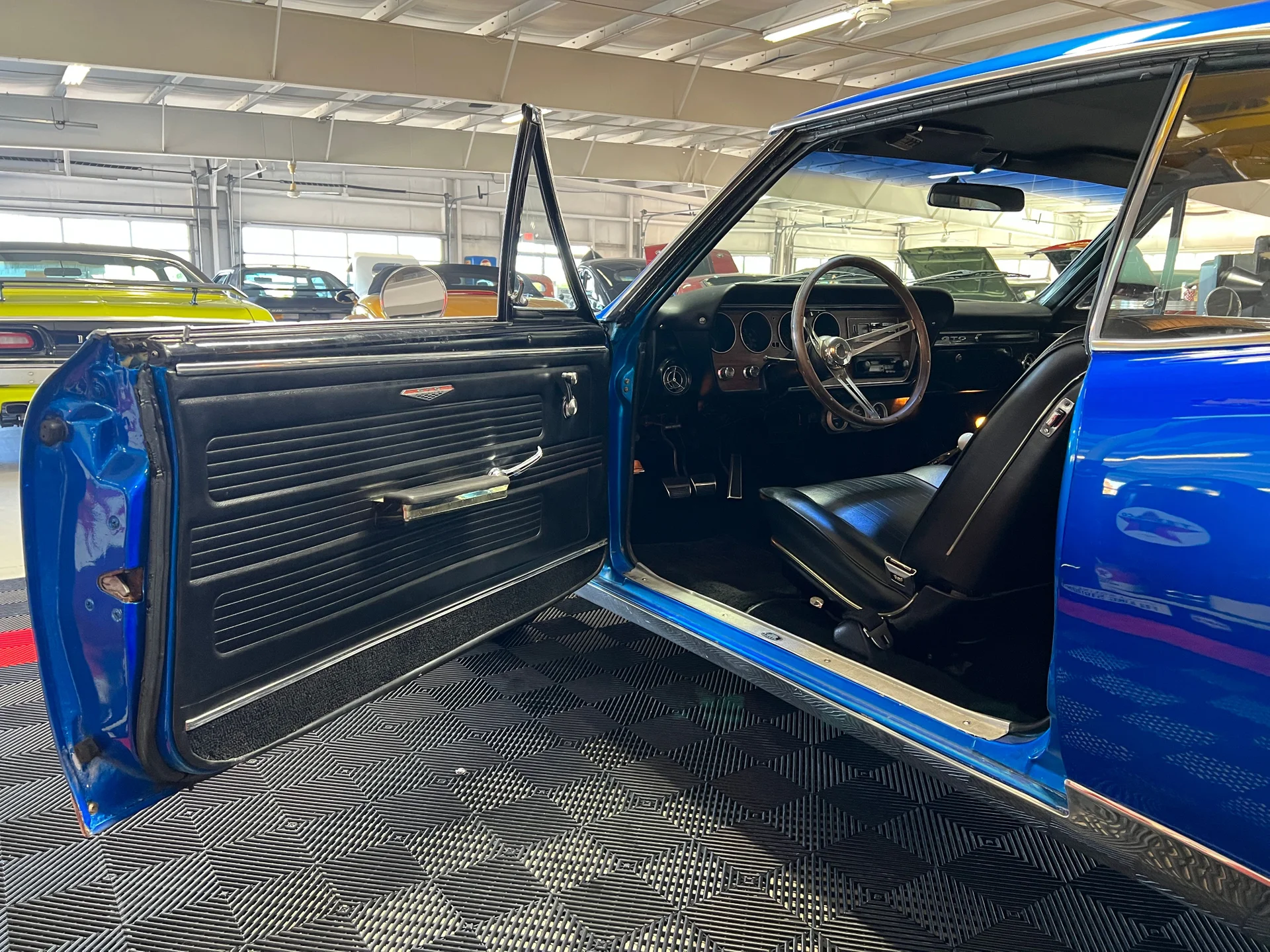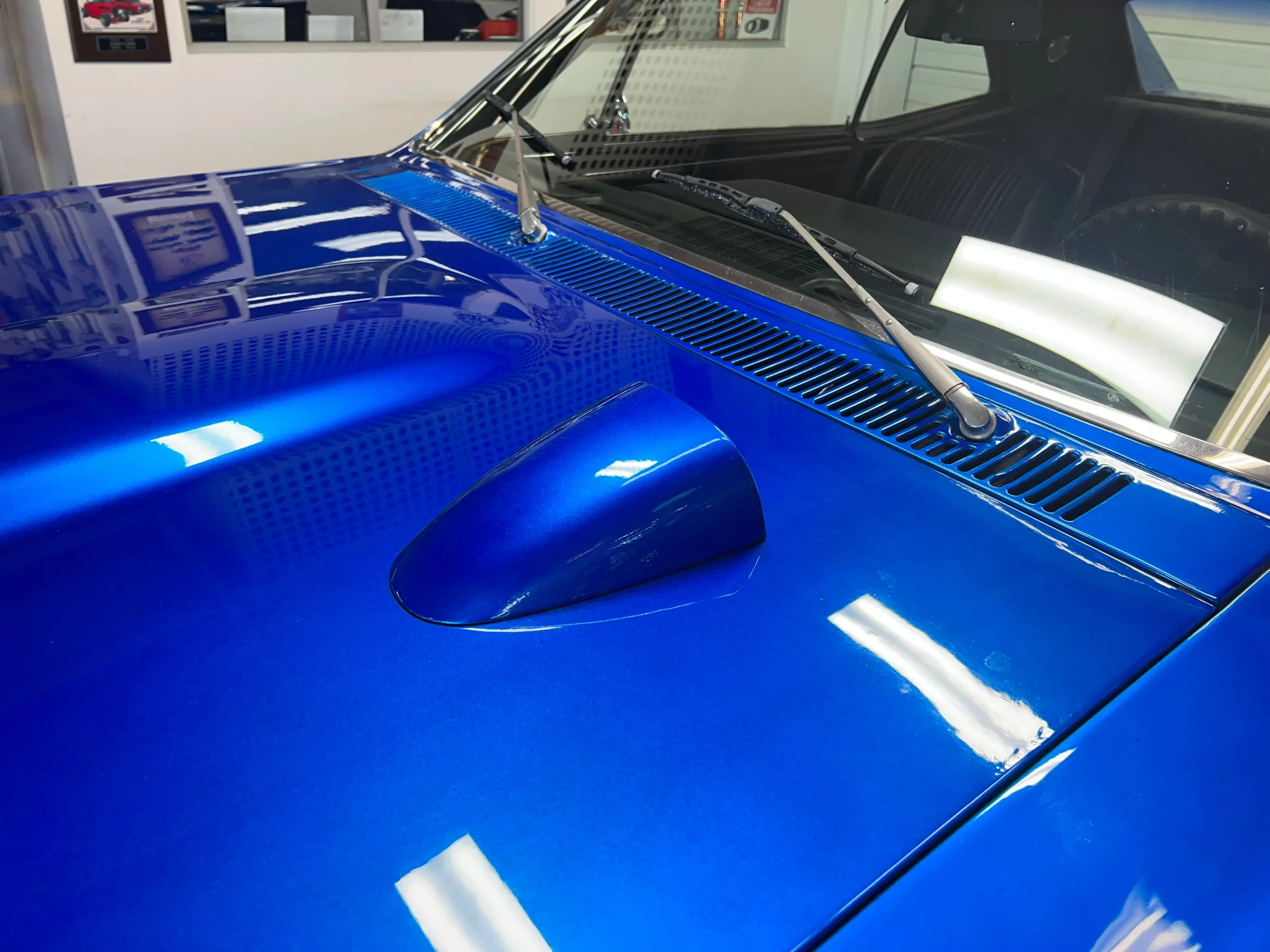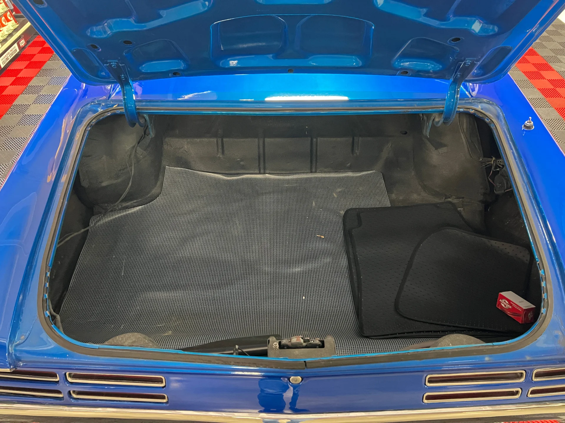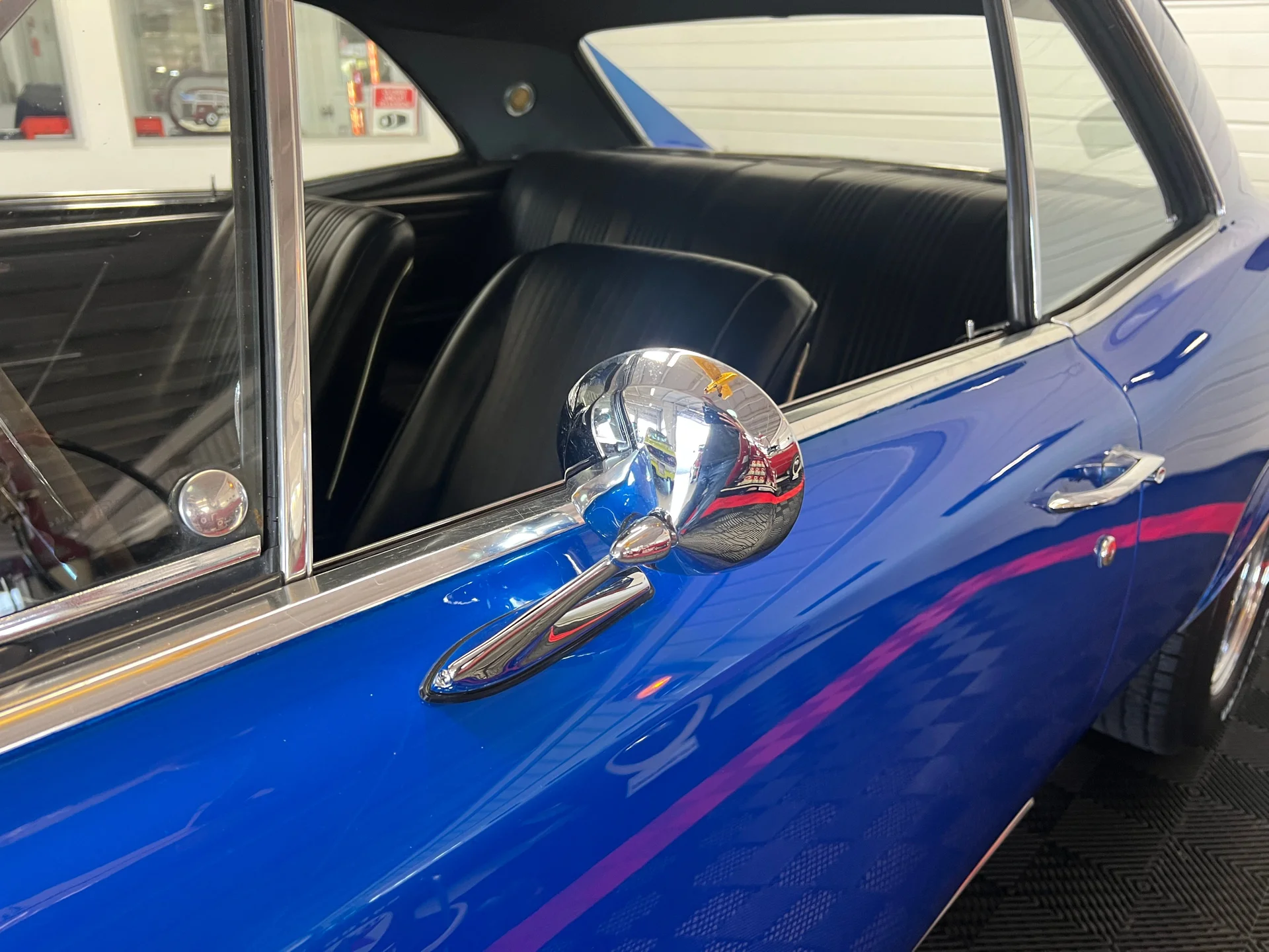 400ci V8 (’68 casting), Holley carb, MSD ignition, headers, aluminum radiator, and chrome dress-up components. Backed by a 4-speed manual with Hurst shifter and 10-bolt rear. Power front disc brakes with drilled/slotted rotors.