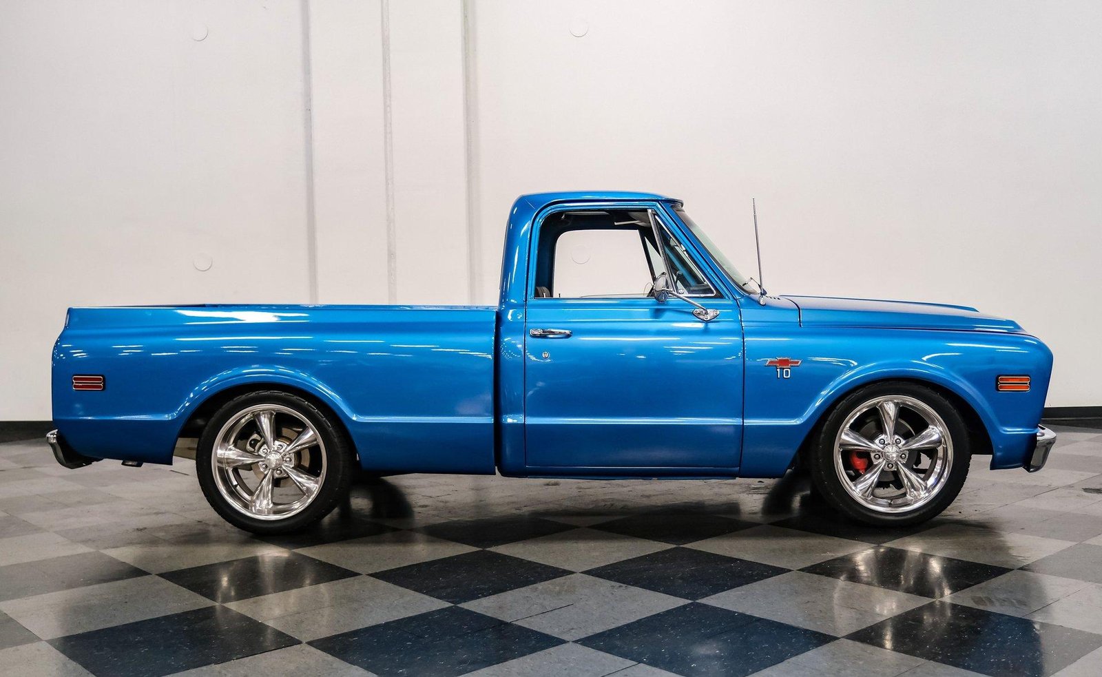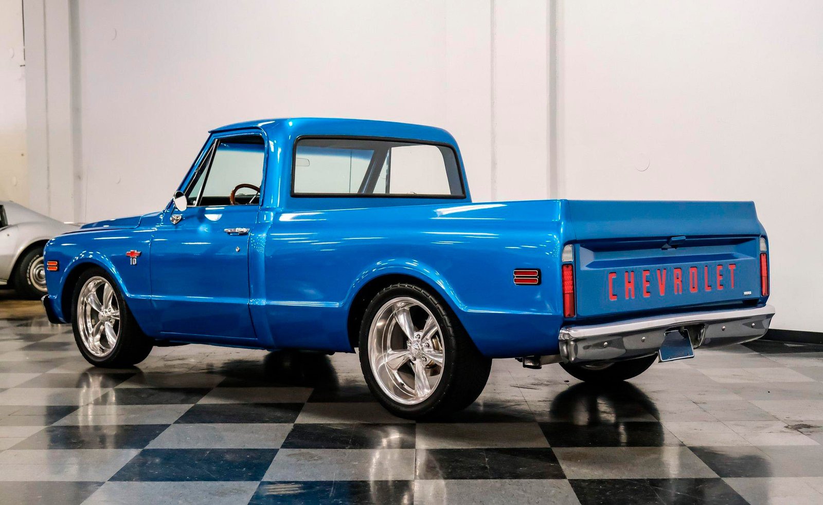 Exterior: Classic short-bed body with sharp paint finish, lowered stance, polished trim, and modern wheels completing the restomod look — built to show and drive.