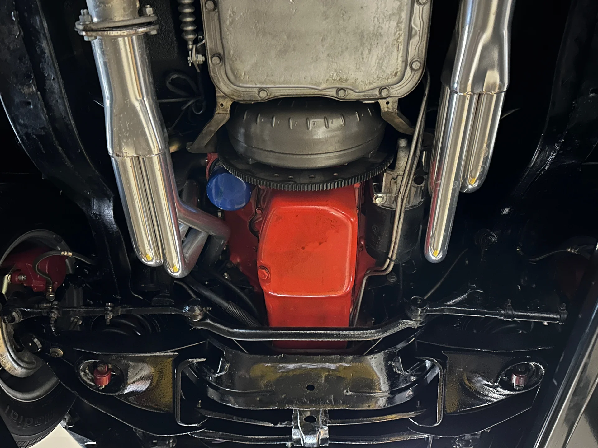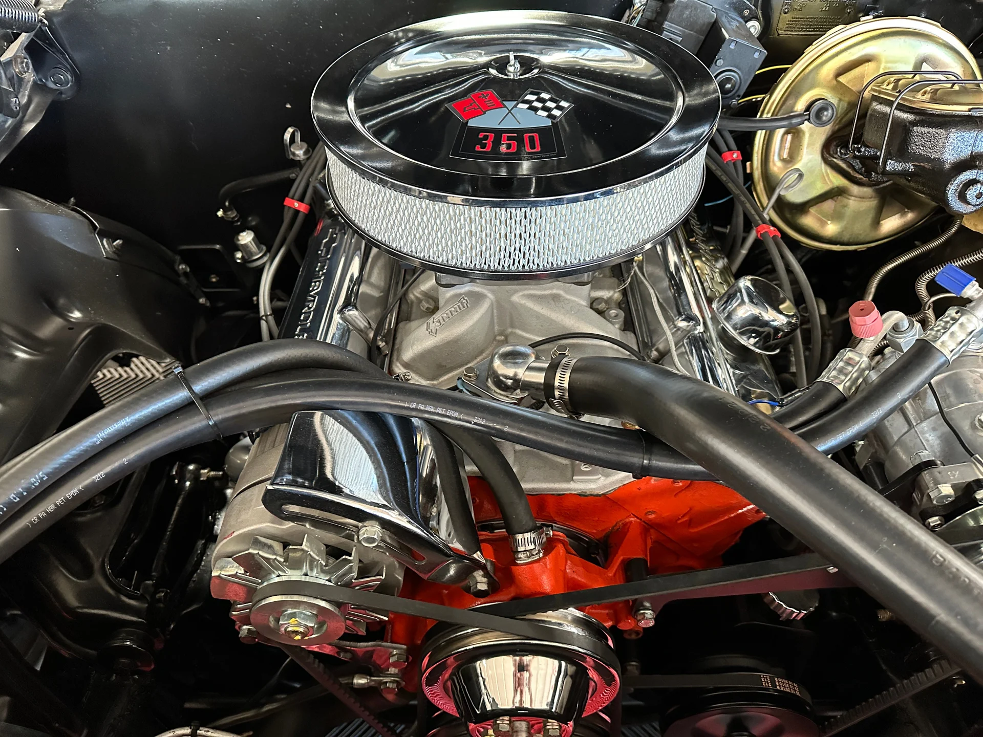 Power front discs, rear drums, new lines and proportioning valve. Lowered 1” all around with refreshed suspension.