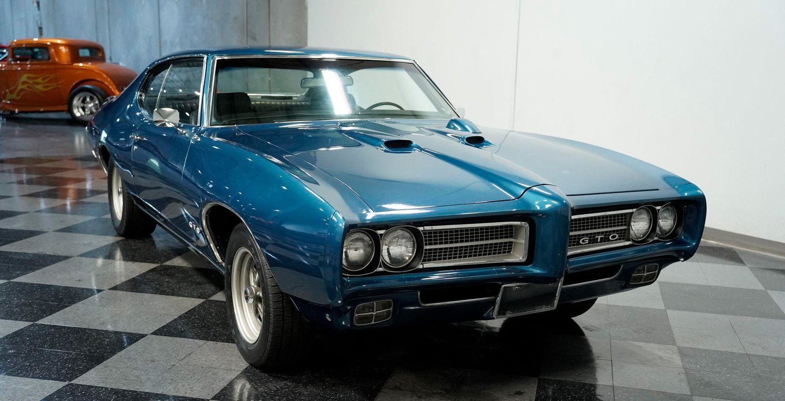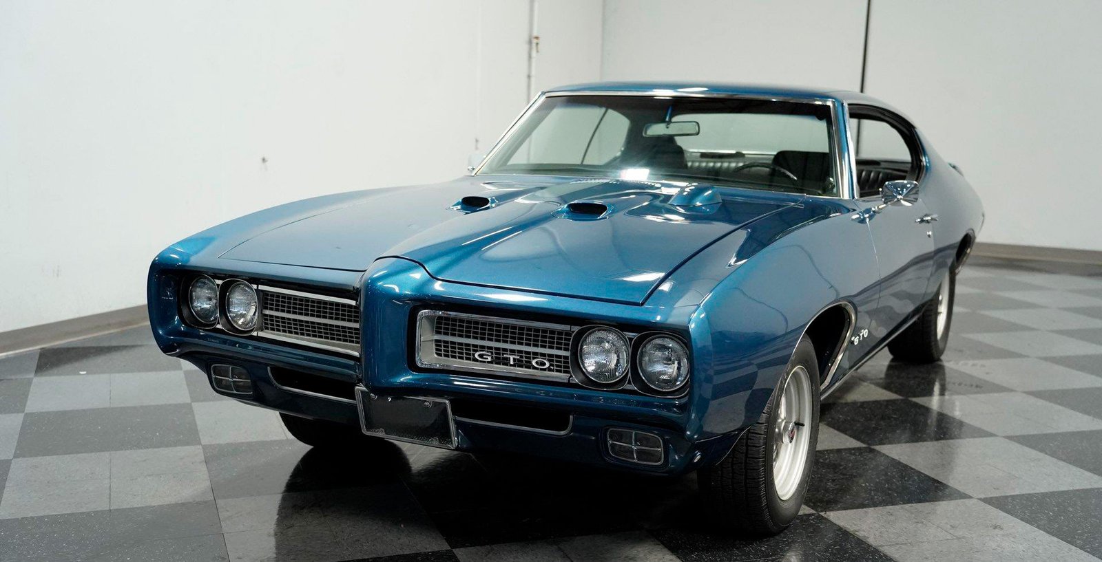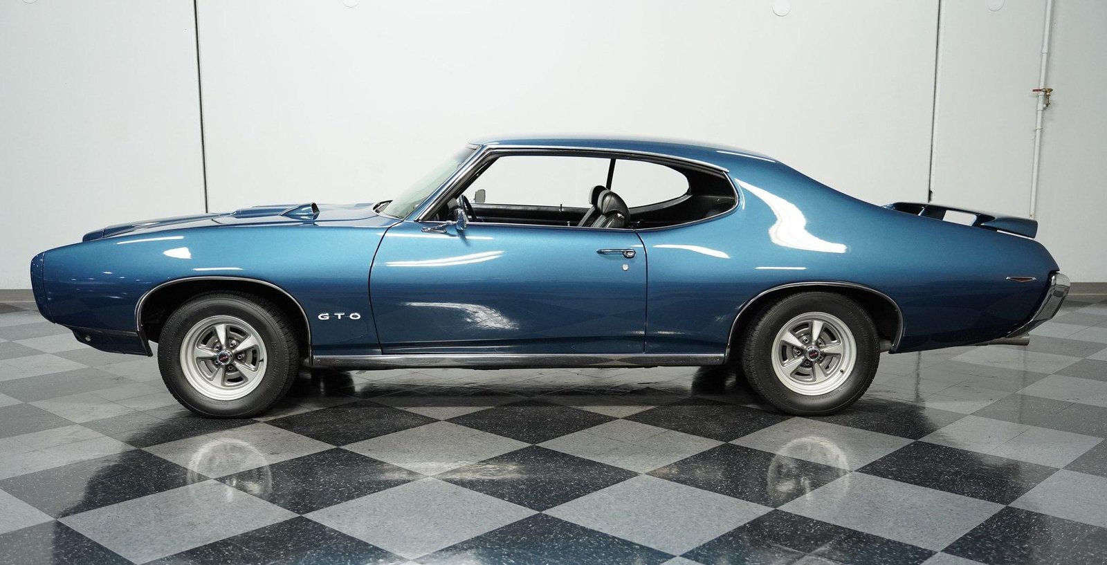 A beautifully finished 1969 Pontiac GTO in Liberty Blue with black interior — powered by its numbers-matching 400 V8 and upgraded 4-speed manual transmission, offering authentic muscle car performance with modern touches.