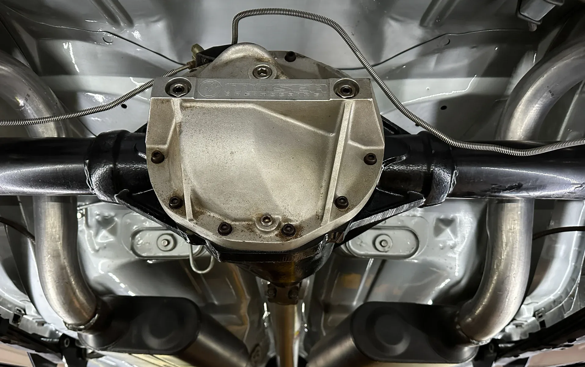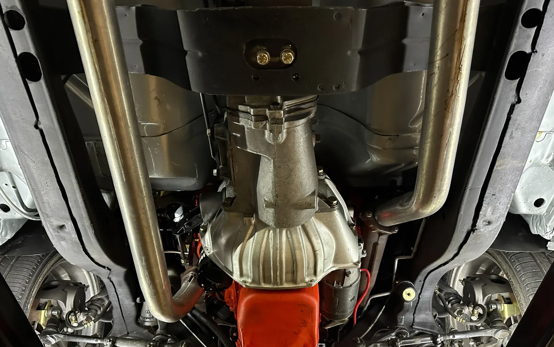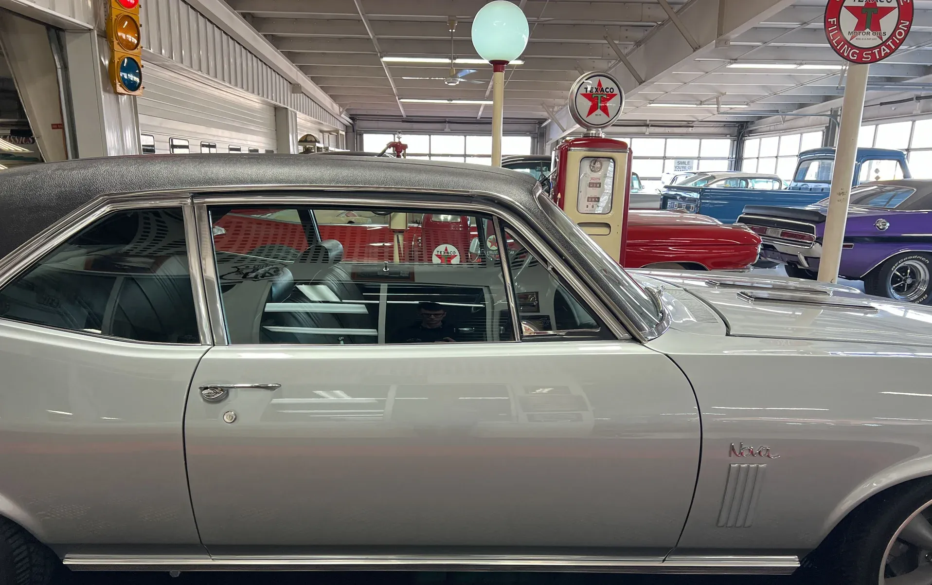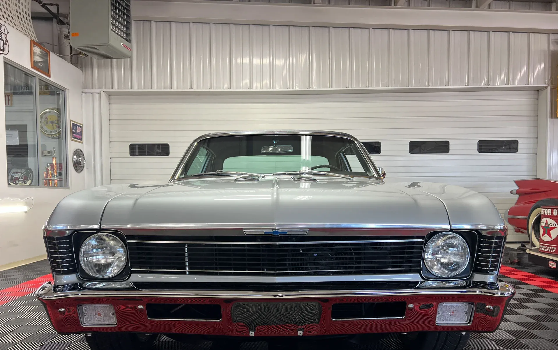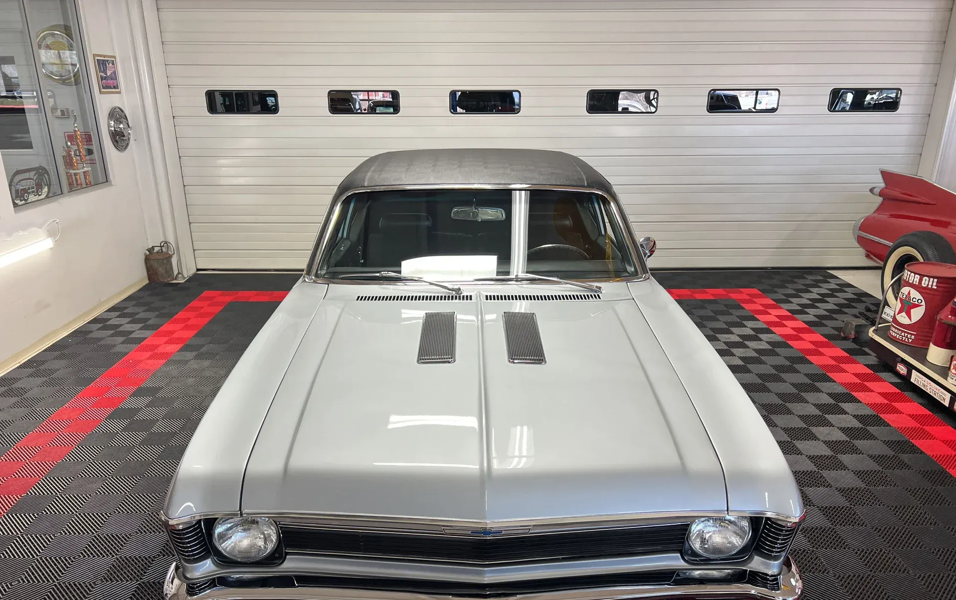 High-gloss Silver paint · Black vinyl top · Full frame-off rotisserie restoration · New chrome, trim, glass & bumpers · American Racing 18” front / 20” rear wheels · Falken radial tires · Lowered stance