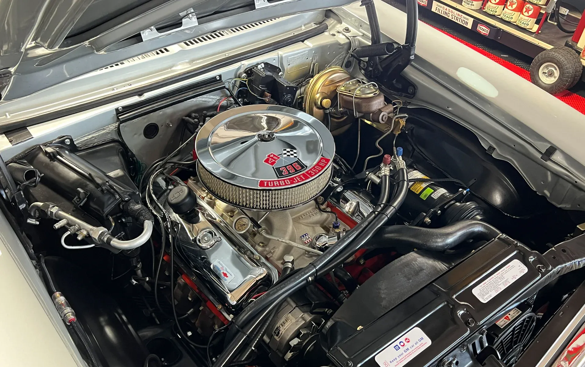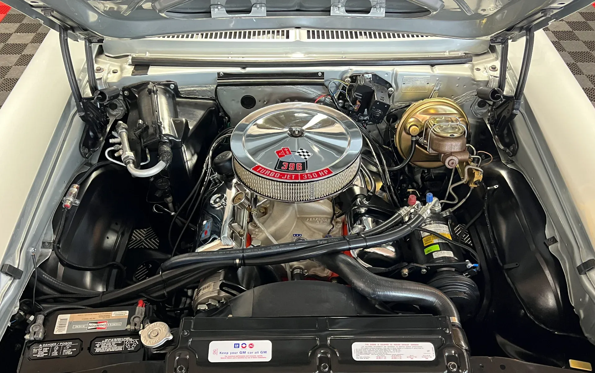 396 Big Block (Casting #3969854) · Edelbrock Performer intake · Brawler carburetor · MSD HEI ignition · Muncie 4-speed manual · Hurst shifter · Caltrac traction bars · Power front disc brakes