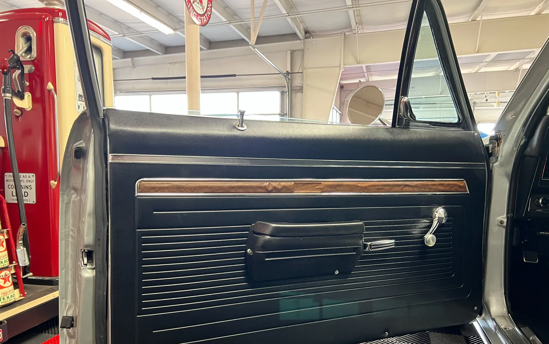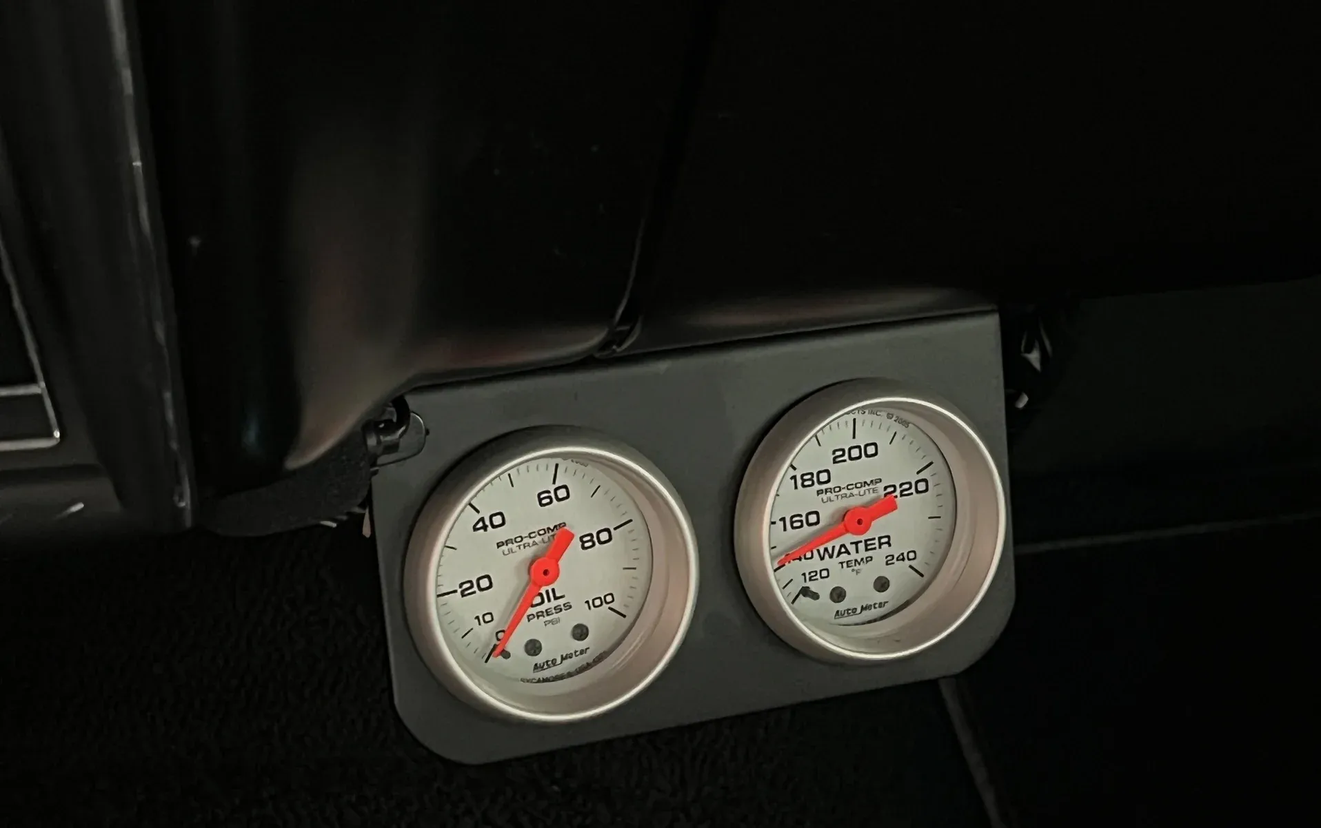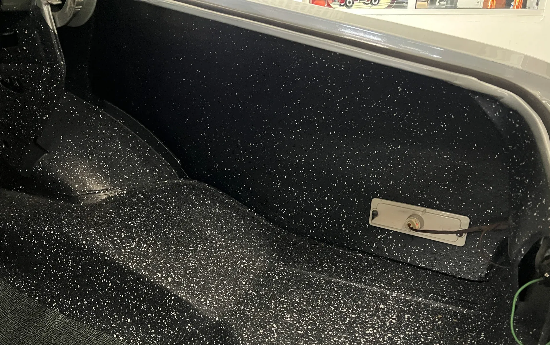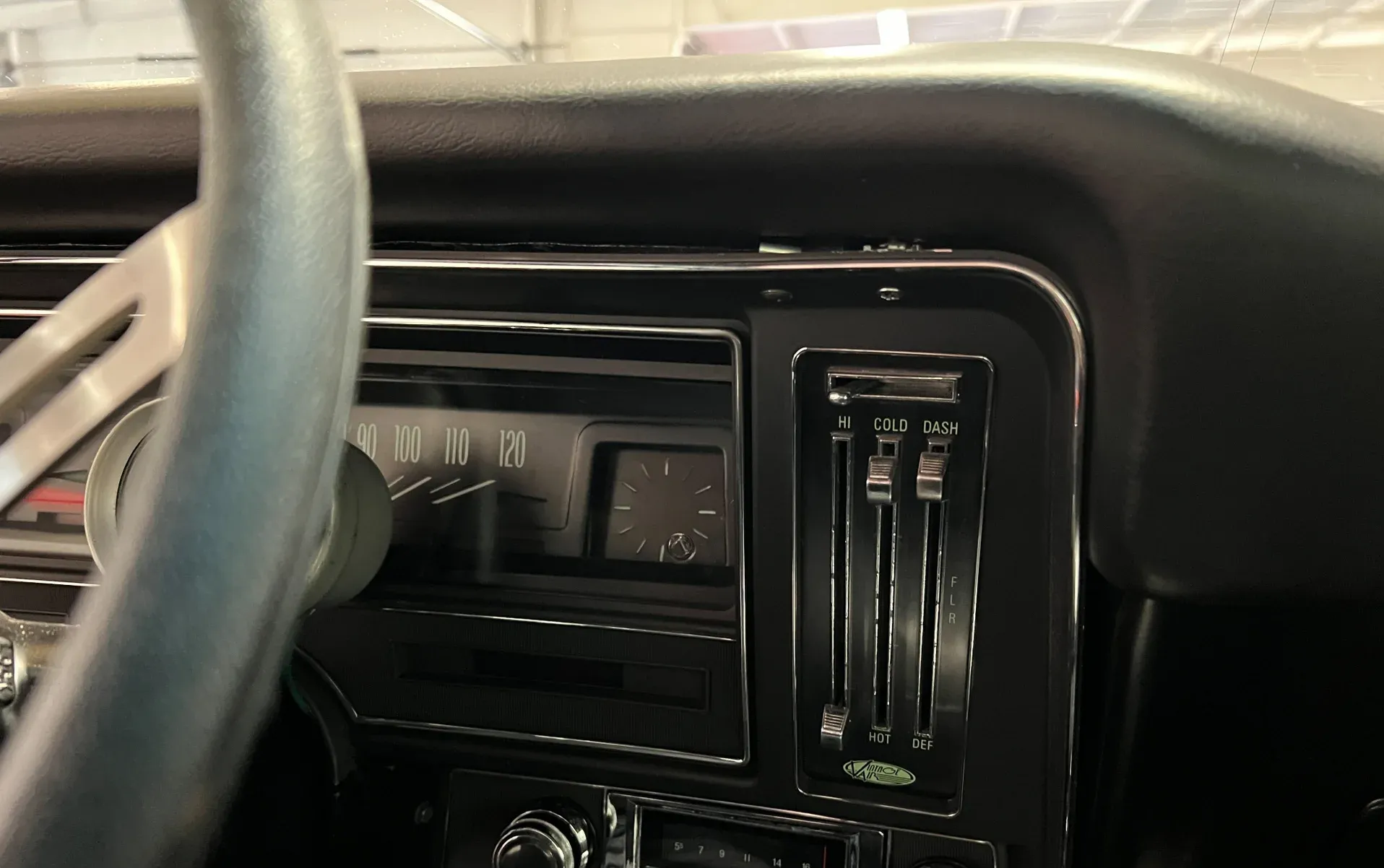 New black vinyl interior · Bench seat · Autometer gauges · Tilt steering column · Vintage A/C (ice cold) · Tight headliner · Seat belts front & rear